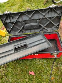 Trolley HILTI composto da due cassette separabili porta attrezzi multi piano, con maniglia, trasportabili anche a mano o per trascinamento con ruote e manico.