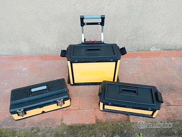 Vendo causa inutilizzo trolley porta attrezzi Fervi 3in1, colore giallo, buone condizioni, presenta segni e usure di utilizzo, in particolare presenta scolorimento del colore giallo, piccola crepa sul coperchi del primo modulo e una crepa sul retro gancio scorri manico ma non influisce sul corretto funzionamento, ganci con elastico rotto ma facilmente sostituibile con un nuovo, dimensione 67cm x 58cm x 49cm, peso 13kg, astenersi perditempo.