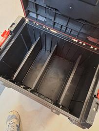 È lo stesso modello che di solito esce alla lidl ma questo in più ha le guarnizioni per ogni coperchio (antipolvere/acqua) e le boccole filettate per l'aggancio degli accessori laterali (vedi sito qbrick dove è tutto spiegato).