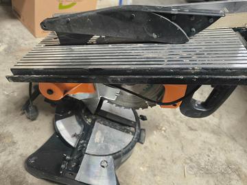 Motore da 1600 W Piano di lavoro superiore 305x460 mm. Peso 16 kg Angolazione di taglio a 90°, 45°, 30°, 22,5° e 15° Lama da 250 mm Ottima per lavori hobbistici