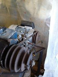 Motore monofase 220V da 3HP 2800 giri, il massimo che possa partire con un contatore da 3kW, montato nuovo e usato per pochissimi tagli. Ideale per pezzi non troppo pesanti, per spessori grossi i tempi di taglio si allungano (originariamente aveva un motore trifase da 6HP).