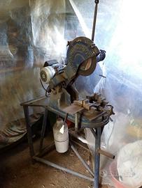 Datata ma molto robusta e pesante, completa di piedistallo come in foto e contrappeso in cemento per tenere la posizione del disco in equilibrio. Morsa doppia per tenere il pezzo su entrambi i lati e possibilità di tagli a 45 gradi in entrambi i sensi.