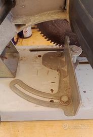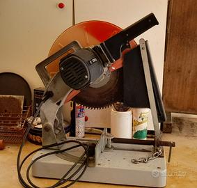 Sega a trazione elettrica per troncature e tagli obliqui, che permette la lavorazione di legno, laminati e plastica.