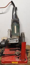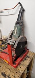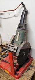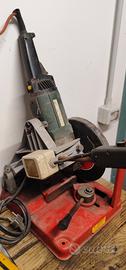 Troncatrice - smerigliatrice angolare 230mm con supporto da banco. Il supporto è universale e può alloggiare anche altre smerigliatrici, viceversa il flex può essere usato libero senza supporto.