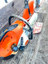 Vendo una perfetta Troncatrice STIHL TS 420, completamente revisionata in centro assistenza stihl con anno di garanzia, con il carburatore nuovo originale appena montato! La troncatrice compatta e maneggevole da 3,2 kW, con dis diametro 350 mm. Filtro aria innovativo di lunga durato prefiltro a ciclone che garantisce lunga durata del fil intervalli di pulizia più lunghi. Le ridotte vibrazion consentono di lavorare più a lungo senza affaticamento. L'impugnatura ergonomica consente straordinaria comodità di taglio in tutte le posizioni di lavoro. Dotata di serie di Elastostart, grazie alla quale si riducono sensibilmente i contraccolpi nell'accensione. Protezione del disco di taglio in pressofusione di magnesio. La Trocatrice TS 420 si può impiegare a mano oppure con carrello FW 20. DATI TECNICI Marca STIHL Modello TS 420 Cilindrata cm 66.7 Diametro disco troncatore mm 350 Massima profondità di taglio mm 125 Peso Macchina a Secco kg 9.6 Potenza kW/HP 3.2/4.4 Carrello FW 20 Accessorio Optional Mando video o altri foto!