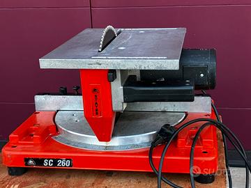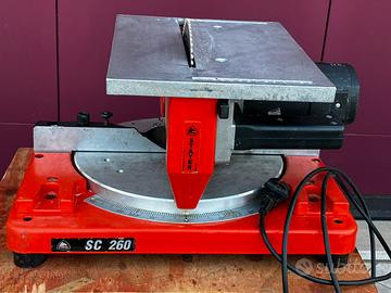 Vendo troncatrice STAYER SC260 usata perfettamente funzionante con la possibilità di applicare il piano superiore per trasformarla in sega circolare da banco come nelle foto. Ha una potenza di 1200 W e il diametro sega è di 250 mm