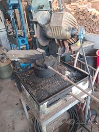 Troncatrice per ferro trifase funzionante con supporto e doppia velocità di taglio.