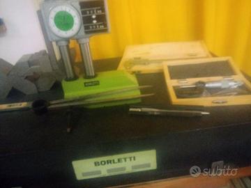 + strumentazione varia di misura: calibro, goniometro, micrometro centesimale, righe di controllo, squadre, prismi, compasso
