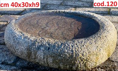 Sono in granito naturale autentico, NON sono di cemento, graniglia o polvere di marmo. Non soffrono il gelo, ideali sia per esterni che per interni.