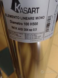 Vendo in blocco 4 tubi di acciaio inox per scarico fumi o aerazione, diametro da 10 cm e lunghi cm.50 come da etichetta, nuovi e mai usati. Li vendo a metà prezzo di quanto li ho pagati, per inutilizzo