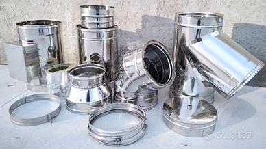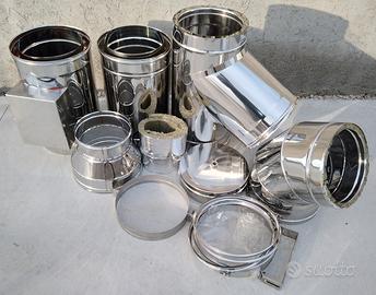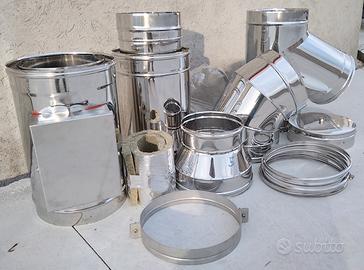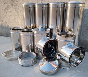 Tubi inox doppia parete con coibentazione in lana di roccia. Ideali per la realizzazione di canne fumarie per scarico fumi di camini, termocamini, caldaie, stufe a legna, stufe a pellets, forni etc. etc. Sono disponibili elementi lineari, gomiti di varie gradazioni, raccordi d'ispezione con scarico condensa, vari modelli di comignolo, riduzioni, tramogge, pezzi speciali e raccordi su misura, fascette di bloccaggio, collari e staffe per fissaggio a parete. Disponibili sia coibentati che monoparete. Per informazioni su misure e prezzi rispondere all'annuncio o contattare telefonicamente.