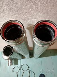 Tubi acciaio per stufa pellet doppia camera. Diametro 120 mm Due pezzi da 1 metro Uno da 50 cm T innesto diametro 80mm staffe per il fissaggio Ritiro in loco.