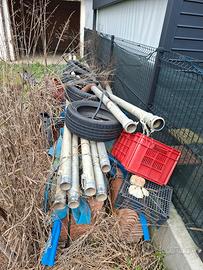 7 tubi irrigazione lunghi 5 metri da 80. vendita solo in blocco 100€ altro materiale in foto prezzo 180