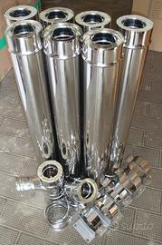 Tubi inox doppia parete con coibentazione in lana di roccia. Ideali per la realizzazione di canne fumarie per scarico fumi di camini, termocamini, caldaie, stufe a legna, stufe a pellets, forni etc. etc. Sono disponibili elementi lineari, gomiti di varie gradazioni, raccordi d'ispezione con scarico condensa, vari modelli di comignolo, riduzioni, tramogge, pezzi speciali e raccordi su misura, fascette di bloccaggio, collari e staffe per fissaggio a parete. Disponibili sia coibentati che monoparete. Per informazioni su misure e prezzi rispondere all'annuncio o contattare telefonicamente.
