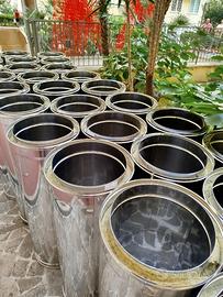 Tubi in acciaio inox per la realizzazione di canna fumaria doppia parete/singola . Elementi lineari, gomiti, raccordi, cappelli, fascette, staffe, pezzi speciali realizzabili su misura e tutti gli accessori necessari per l'installazione della canna fumaria, compreso staffe e fascette della stessa coloritura del tubo. Per ulteriori informazioni circa le misure ed i prezzi contattare via mail
