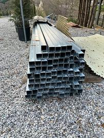 Vendo tubi a sezione quadrata 4x4 cm in acciaio zincati, lunghi 6 metri. Possono essere ultilizzati per vari impieghi, tra qui strutture da esterno, gazebi, costruzioni varie, …. . Possibilita di trasporto in provincia