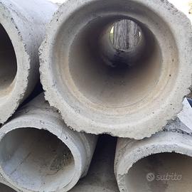 Dieci tubi in cemento diametro interno 40 cm lunghezza 200 cm autoportanti con piede di appoggio piano innesto a bicchiere. Usati in buone condizioni.