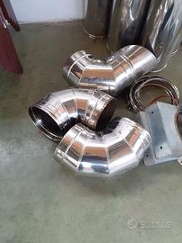 6 tubi da 250 x 1mt € 20 l'uno, 4 da 80 x 1mt €5 l'uno, 3 curve da 250 a 90 gradi €10 l'una, 3 staffe distanziatrici da 250 € 10 l'una con fascette di congiunzione, riduzione da 300x300 quadro a 250 tondo €20 + altri 4 tubi da 250 varie misure tutto per 200€ si vende anche singolarmente