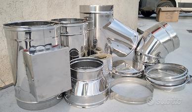 Vasta gamma di tubi ed accessori per la realizzazione della canna fumaria tutti in acciaio inox. Sono disponibili: elementi lineari, gomiti di tutte le gradazioni, raccordi con tappo raccolta condensa, tramogge su misura, riduzioni su misura, cappe per camino su misura,valvole di regolazione fumi, tutti i tipi di cappello sia tondo che quadro, fascette e staffe di ancoraggio a parete. Il tutto sia monoparete che coibentato. Per maggiori informazioni su misure e prezzi rispondere all'annuncio o contattare telefonicamente.