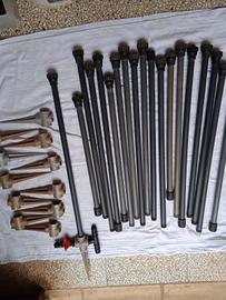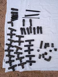 Circa 500 metri di tubo per irrigazione diviso in tubi di varie lunghezze con tutti gli accessori per innaffiare ( raccordi, tappini, innesti, tubi a T, kit per irrigazione, vari gocciolatoi lt/h) completo di tutto.