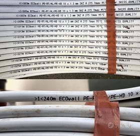 Vendo per rimanenza dopo ristrutturazione tubo multistrato ecowall PE-RT/AL/PE-HD 10 x 1.3 mm, circa 200 metri. Per riscaldamento e raffrescamento a pavimento radiante o pareti radianti, completo di 20 guide di supporto a incastro.