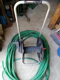Lunghezza 31 metri, è di quel tipo con la retina bianca all'interno della gomma usata anche nei cantieri edili. 35 euro. Arrotolatore 15 euro. Grazie