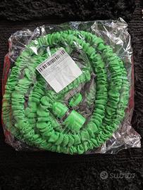 Tubo acqua salvaspazio verde allungabile fino a circa 5.5 6 metri. Pistola in plastica con 7 modalità di spruzzo. Attivato solo per provarlo, funziona perfettamente; lo vendo perché purtroppo ho sbagliato la misura e mi serve più lungo. Scambio a mano a Verona oppure spedisco.