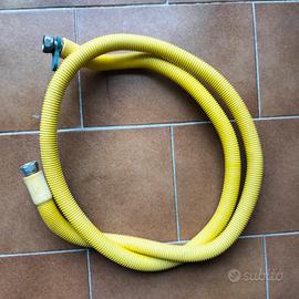 Vendo tubo gas flessibile da 2 metri, rivestito in materiale plastico giallo resistente, completo di attacchi filettati in metallo su entrambe le estremità. Ideale per collegamento di fornelli, cucine o piani cottura a gas metano o GPL. In ottime condizioni, pronto all’uso.