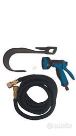 Realizzato con materiali robusti e flessibili, è leggero e facile da maneggiare, evitando nodi e grovigli. Include lancia a spruzzo multi-getto, ideale per diverse esigenze come irrigazione di piante, pulizia di superfici o lavaggio di auto e attrezzi.