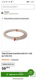 Vendo tubo di rame già svasato e con raccordo 1/4 e 3/8 per clima, non più utilizzato a seguito di ristrutturazione. Pagato € 60