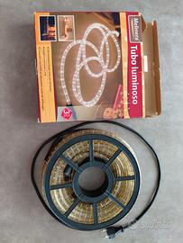 Tubo luminoso lungo 10 metri con 360 lucine con cavo da collegare alla presa lungo 1,5 mt. Ottimo per balconi giardini ed anche come decorazione di natale.