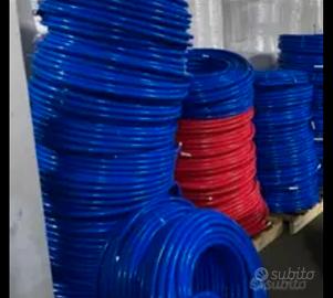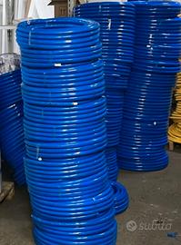 disponibile stock di tubo multistrato rivestito per impianti sanitari e di riscaldamento. Materiale : pe-rt/al/pe-rt tipo 2. d.16x2 mm Guaina in ldpe espamso. spessore guaina 6mm. prodotto nuovo. Made in italy. colori rosso bianco blu in base alle disponibilità. lunghezze dei rotoli : miste ( comprese tra 20 e 49 metri. Esempio : 23, 24, 29, 31, 33, 40, 44 metri.). In base alle disponibilità. LOTTO COMPOSTO DA 1000 METRI.(Lunghezze ben assortite). no spedizioni. SOLO RITIRO. no trattative.