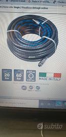 Vendo tubo per aria compressa di 15 metri, in PVC con raccordo femmina universale e maschio standard. Pressione max 20 bar e di scoppio 60 bar. Diametro esterno 17 mm ed interno 10 mm. Made in Italy, in ottime condizioni, praticamente nuovo, utilizzato solo per la prova appena acquistato ma poi sostituito con un altro comprensivo di avvolgicavo, ad euro 20,00. Disponibile alla spedizione.