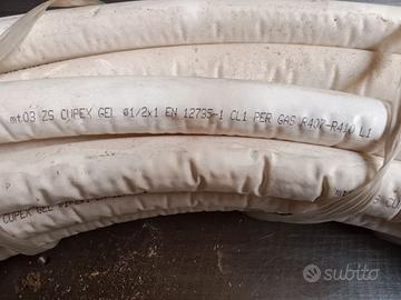 Tubo in rame rivestito nuovo-zs cupex 1/2x1 per gas, 30 m (specifiche leggibili in foto) - vendita matassa intera, prezzo di mercato 6,70/ml circa, totale 200 euro vendo per mancato utilizzo per 150 euro, ritiro a mano non spedisco