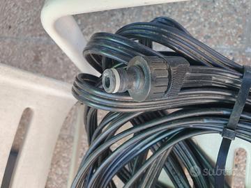 Tubo triplo piatto forato per irrigazione a pioggia Florabest. Innesto standard tipo Claber. Lunghezza 20 metri. Come nuovo.