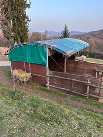 Vendo 2 box per cavalli o animali in genere struttura in CarPlay compensato marino e acciaio zincato in ottime condizioni telo in pvc in colore verde nuovo non guardate quello in foto è un telo provvisorio.