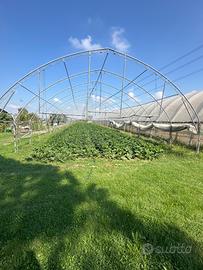 Si vende serra con tubi da 1 pollice e mezzo, zincata. Larghezza 10 metri, lunghezza 80 metri. Ottima come ricovero macchinari o stoccaggio rotoballe. Si vende senza copertura. Smontaggio e trasporto a carico dell'acquirente.