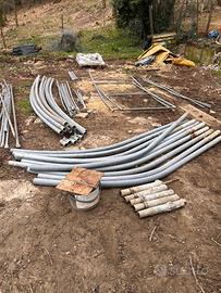 Vendo Tunnel capannone Agricolo in metallo zincato, dimensioni 8 m per 8 m altezza architrave 2,45 m telo in PVC nuovo, colore verde, mai montato praticamente il prezzo del telo nuovo è maggiore del prezzo dell’annuncio, la struttura è regalata! L’abbiamo smontata ed è pronta per essere trasportata anche con un semplice furgone, molto pratica poiché smontabile!