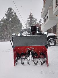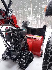vendo bellissima turbina da neve unica nel suo genere pari al nuovo usata circa 8 volte nel periodo invernale con potente motore 420cc. bridge station made in usa 15 hp bocca lavora 90 cm espulsione neve 15 MT maniglie riscaldate, fari supplementari 6 marce avanti +2 retro sterzata dx e sx assistita cingoli triangolari per facilità il grip su neve salite discese e scale. olio motore+, ingrassaggio eseguito pronta all'uso