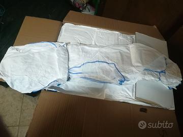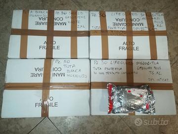 Tute monouso nuove in stock totale pezzi 140, taglia XL-2XL come da foto. Vendo anche separatamente. Ritiro a mano o con spedizione in tutta Italia.