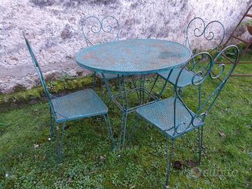 TVOLO CON QUATTRO SEDIE IN FERRO VINTAGE