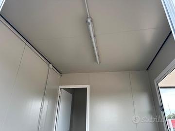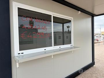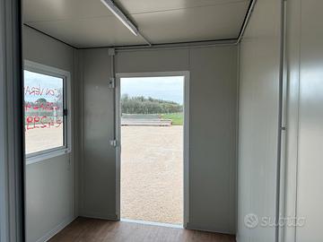 Misure: Ufficio mobile coibentato bilocale da 4.25 mt x 2.45 mt con pannellatura spessa 4 cm complete di impianto elettrico, porte, finestra, veranda.