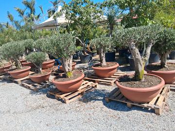 Ulivi in ciotola a bonsai, ci sono sia singola che a più teste, la forma può essere a palla o a disco varie altezze disponibili. ovviamente il prezzo varia da esemplare a esemplare