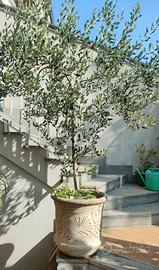 Vendo per questione di spazio bellissimo ulivo pregiato, in vaso lavorato di terracotta, di circa 5 o 6 anni di vita, tutto a € 250 trattabile.