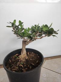 Esemplare di ulivo prebonsai (Olea europaea) in ottima salute, con un fusto robusto e vigoroso, ideale per la formazione a bonsai. L'altezza totale della pianta è di circa 40 cm, vaso incluso. È una pianta facile da curare, che richiede luce diretta e annaffiature moderate. Se interessato all'acquisto di più piante è possibile concordare un pacchetto e un piccolo sconto sul prezzo totale. Per qualsiasi domanda, non esitare a contattarmi.