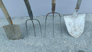 un badili un vanghetto e 2 forche,