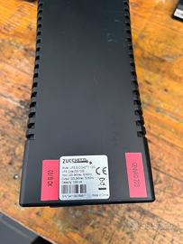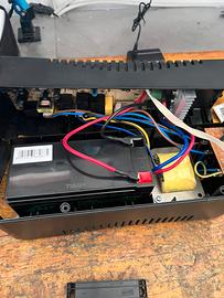 Premessa, l’ups funziona perfettamente ma ha un difetto: la potenza massima prelevabile è di 300w. Il suddetto ups aveva un software che consentiva di programmare la potenza massima ed essa è stata impostata a 300w. Purtroppo la chiave di licenza è stata persa e non è più possibile inpostare una nuova potenza. Se riuscite a bypassare questa chiave l’ups puo erogare piu potenza, altrimenti va usato con carichi inferiori a 300w (come modem o nas per esempio, uso che fa ora). Batteria appena sostituita con modello a capacità maggiorata. Per praticità lo vendo come non funzionante perchè ha quel difetto e un punto della scocca è lievemente danneggiato ma per il resto funziona alla perfezione. Tempo di commutazione inferiore a 10 ms. Spedizione disponibile