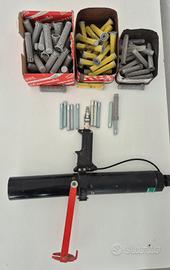 Utensile x erogare la resina ad aria compressa + n. 68 gabbiette in plastica + n.10 bussolotti zincati. PER INFO 360686080.