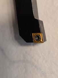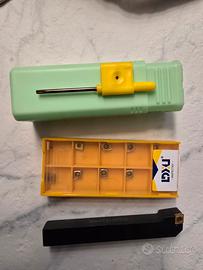 Vendo per acquisto errato utensile tornio più 10 placchette. Gli oggetto sono nuovi e mai usati. Plachette di grado per acciaio e raccordo in punta di 0.4mm.