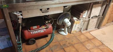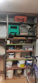 Disponibile una grande quantità di attrezzi e utensili...compreso un compressore di qualità e funzionante (che nuovo va sulle 180€)e un trapano...oltre a tinte, cacciaviti,chiavi,martelli,scaffali etc etc...(foto).